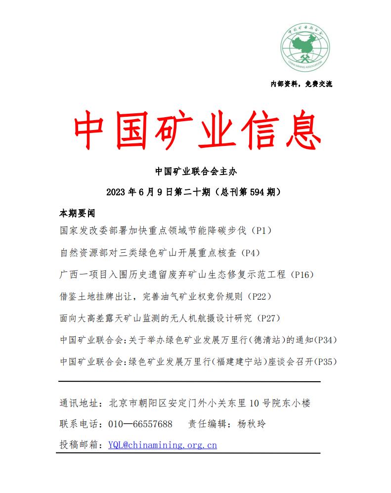 中國礦業(yè)網(wǎng):2023年6月5日—6月9日《中國礦業(yè)信息》第二十期