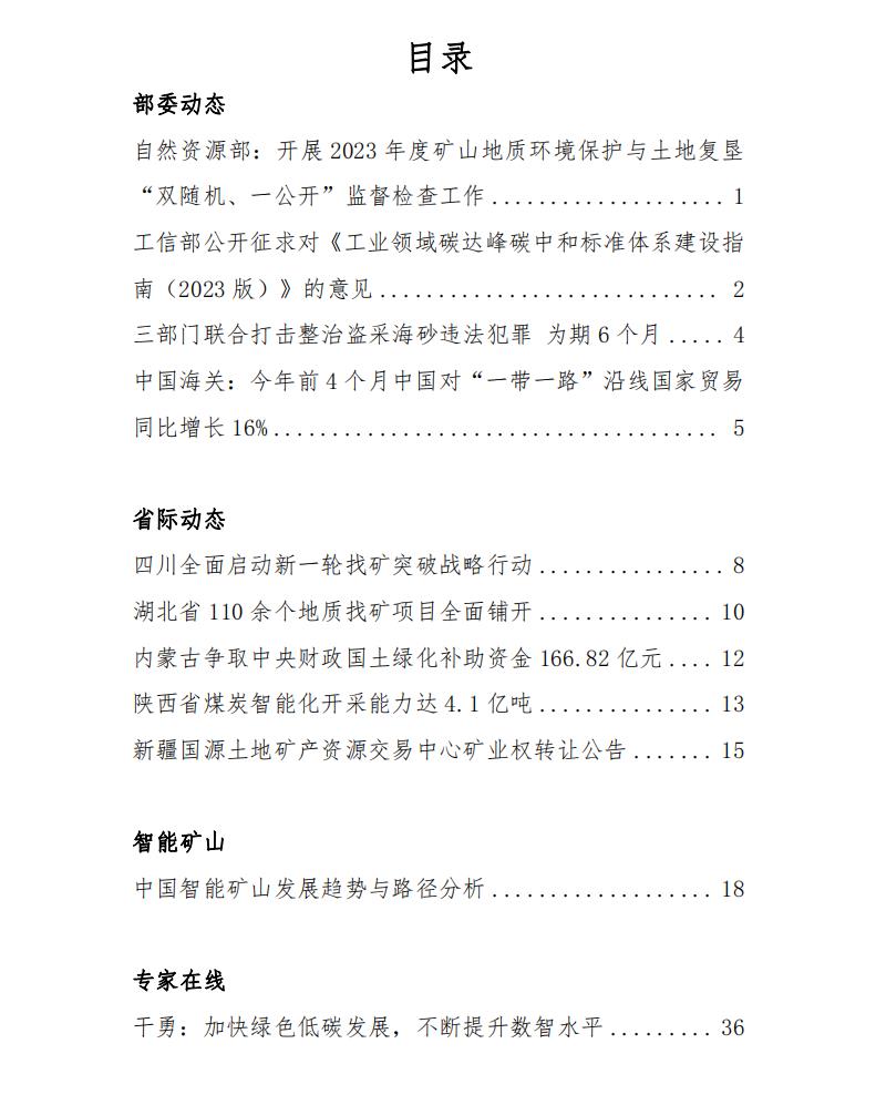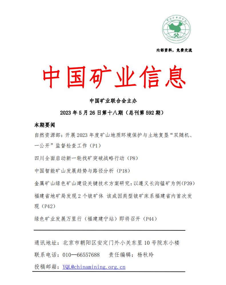 中國礦業(yè)網(wǎng):2023年5月22日—5月26日《中國礦業(yè)信息》第十八期