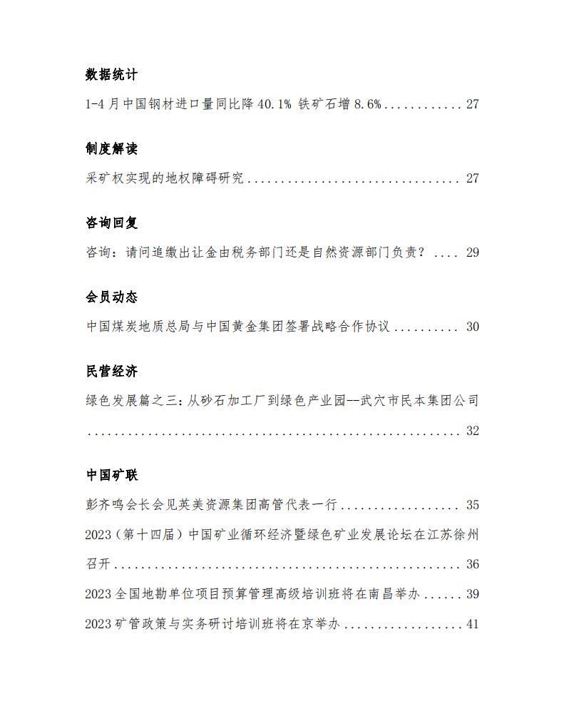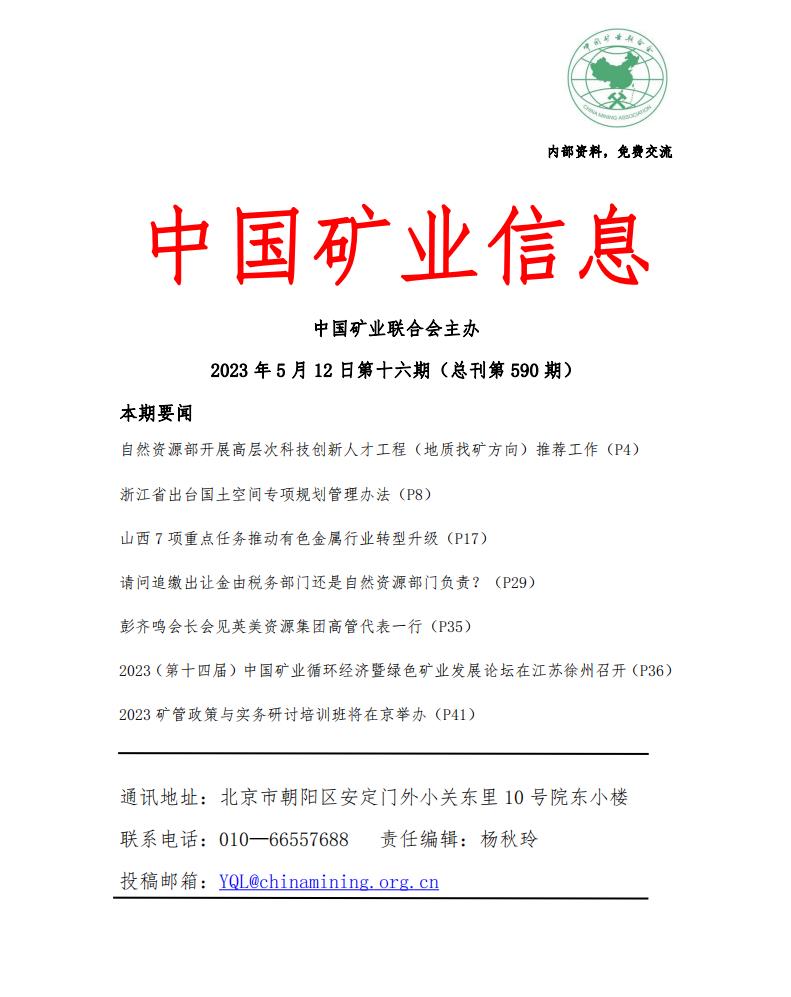 中國(guó)礦業(yè)網(wǎng):2023年5月8日—5月12日《中國(guó)礦業(yè)信息》第十六期