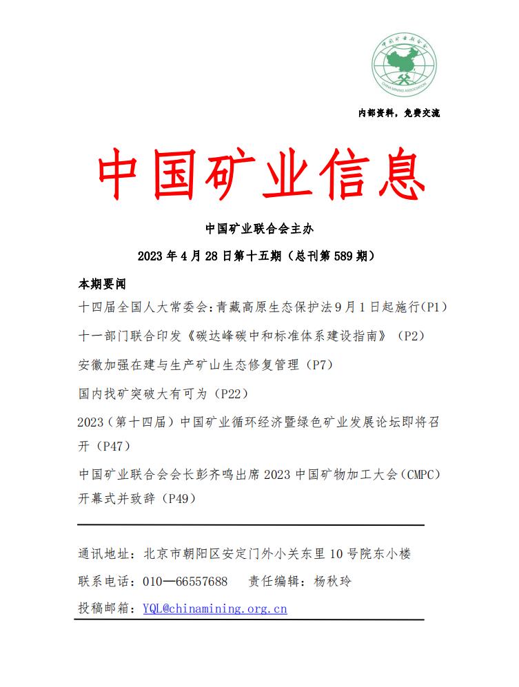 中國礦業(yè)網(wǎng):2023年4月24日—4月28日《中國礦業(yè)信息》第十五期