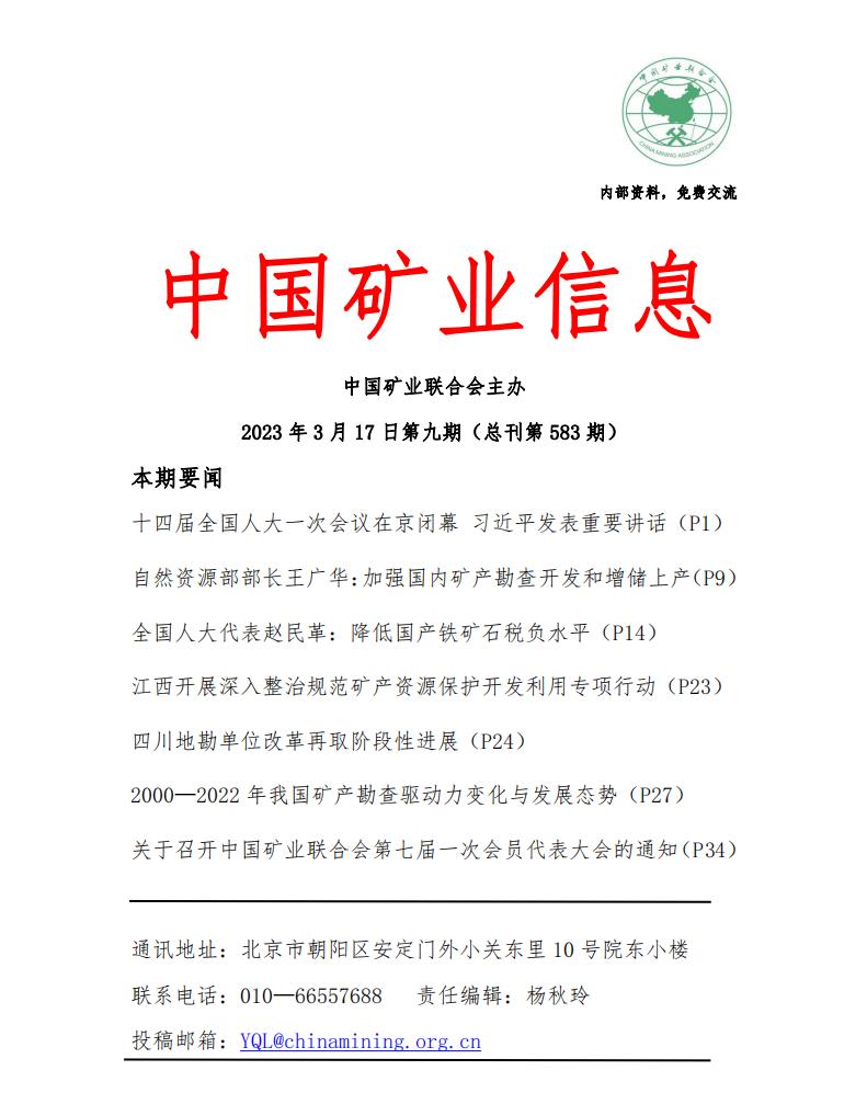中國礦業(yè)網(wǎng):《中國礦業(yè)信息》2023年3月6日—3...