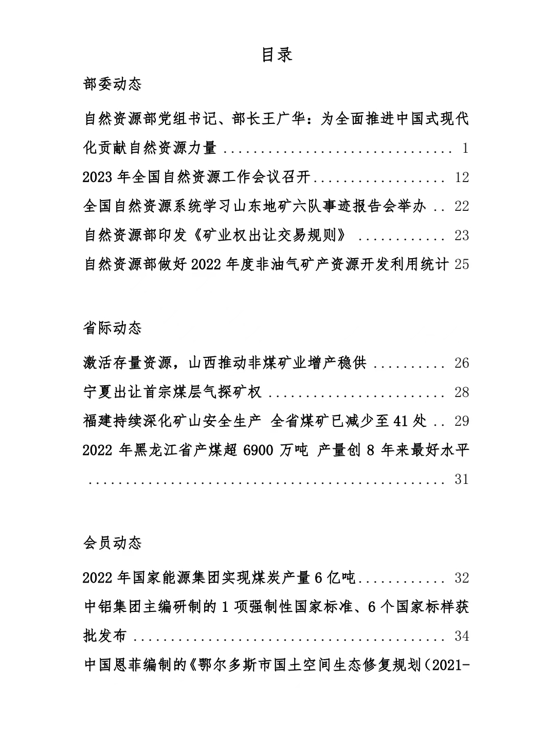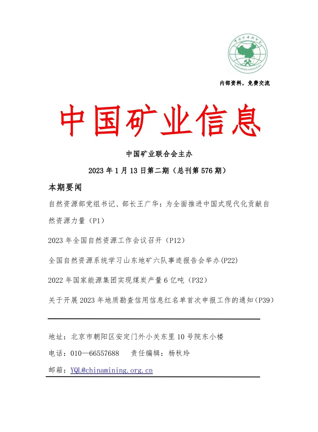 中國礦業(yè)網(wǎng):《中國礦業(yè)信息》2023年1月2日—6...
