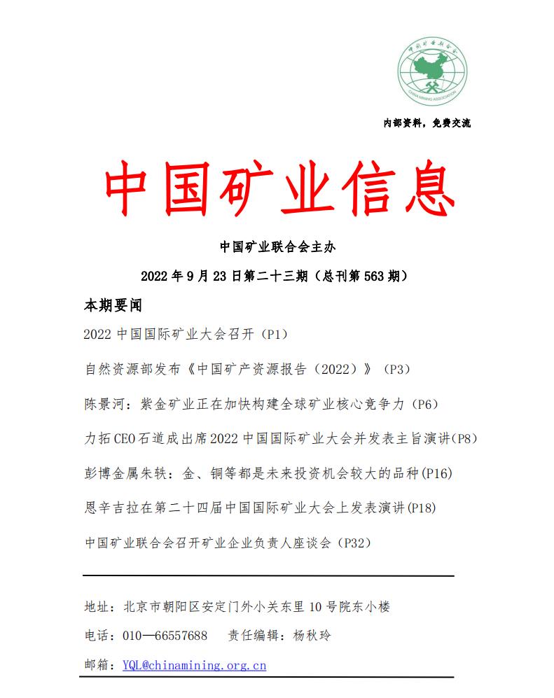 中國礦業(yè)網(wǎng):《中國礦業(yè)信息》(20220919—20220923)第二十三期(2022中國國際礦業(yè)大會(huì)???/div>