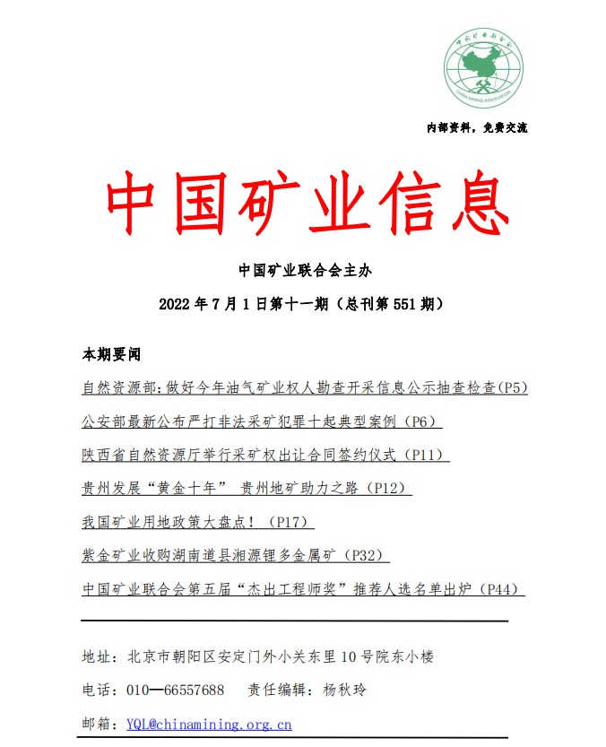 中國礦業(yè)網(wǎng):《中國礦業(yè)信息》(20220627—20220701)第十一期