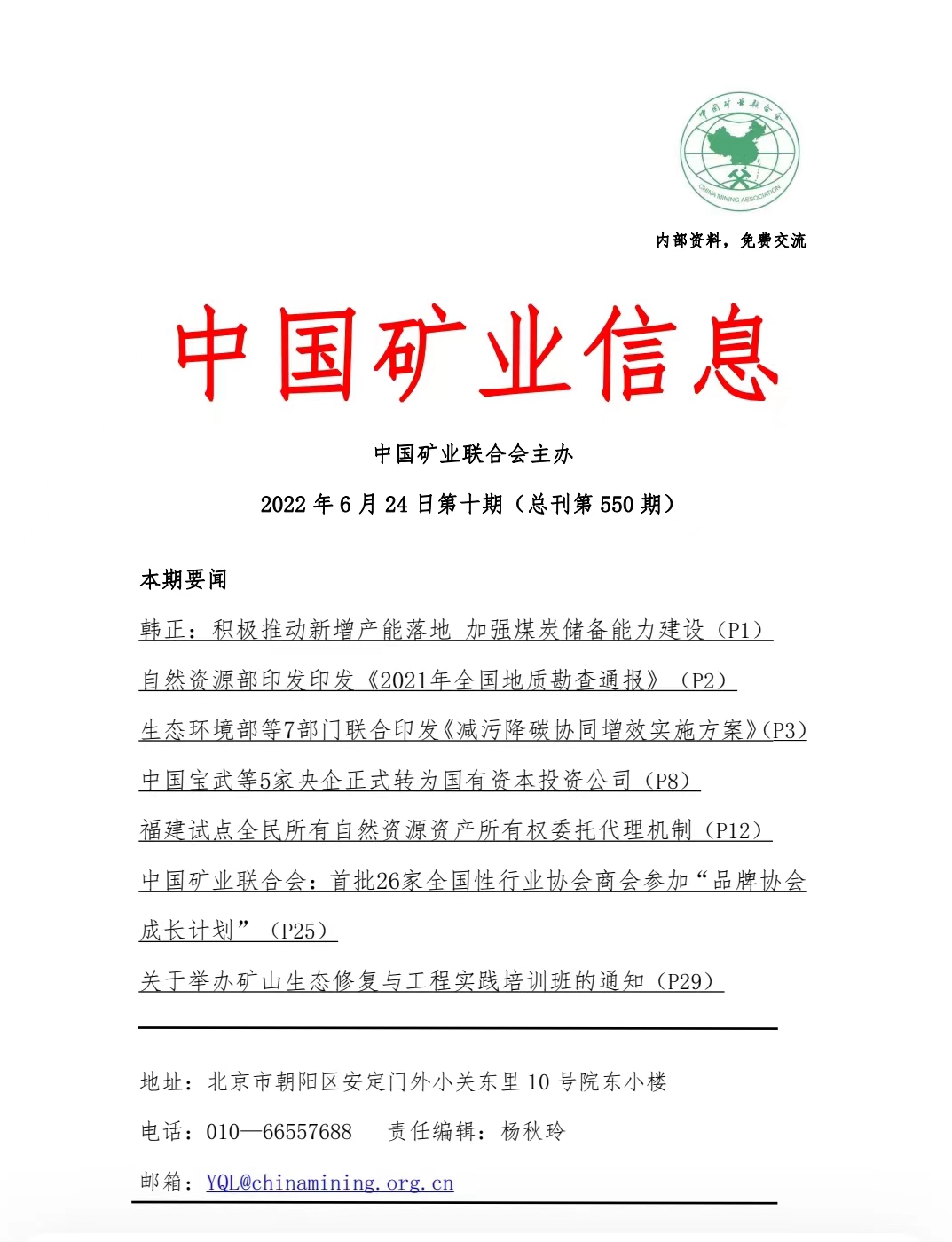 中國礦業(yè)網(wǎng):《中國礦業(yè)信息》(20220620—20220624)第十期