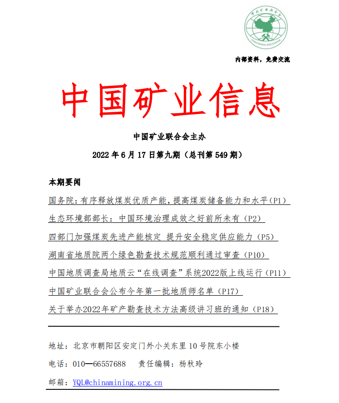 中國(guó)礦業(yè)網(wǎng):《中國(guó)礦業(yè)信息》(20220620—2...