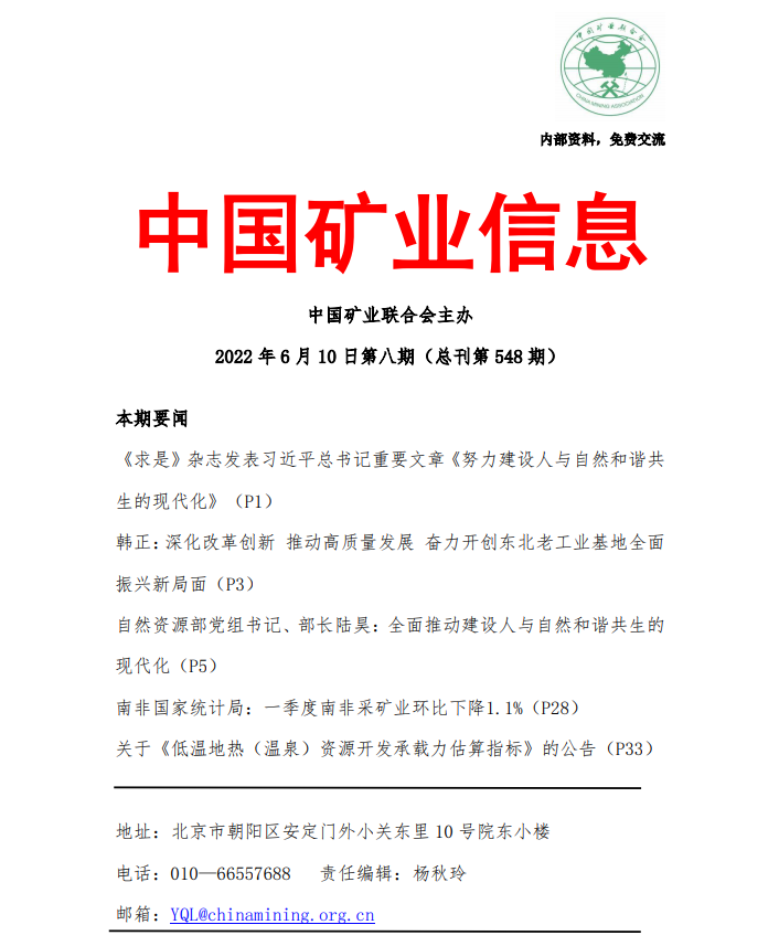 中國礦業(yè)網(wǎng):《中國礦業(yè)信息》2022.6.10第八期