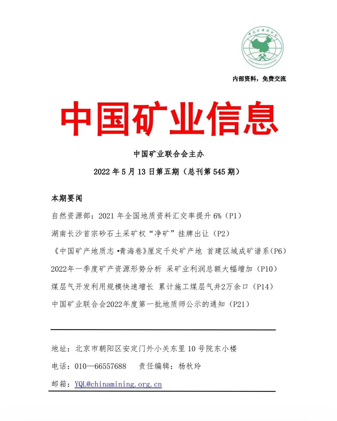 中國(guó)礦業(yè)網(wǎng):《中國(guó)礦業(yè)信息》2022.5.13第五期