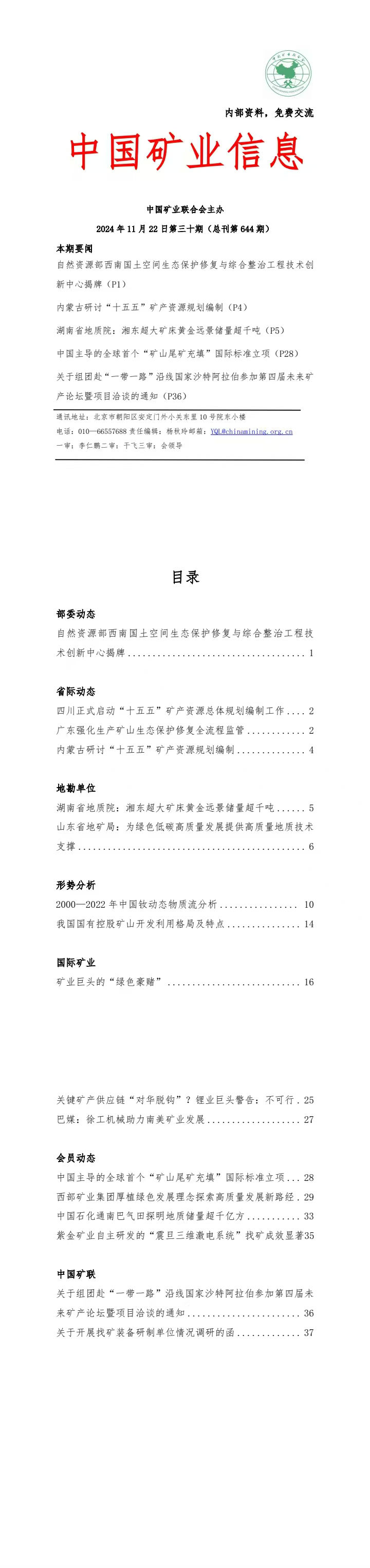 2024年11月18日—11月22日《中國礦業(yè)信息》第三十期.pdf