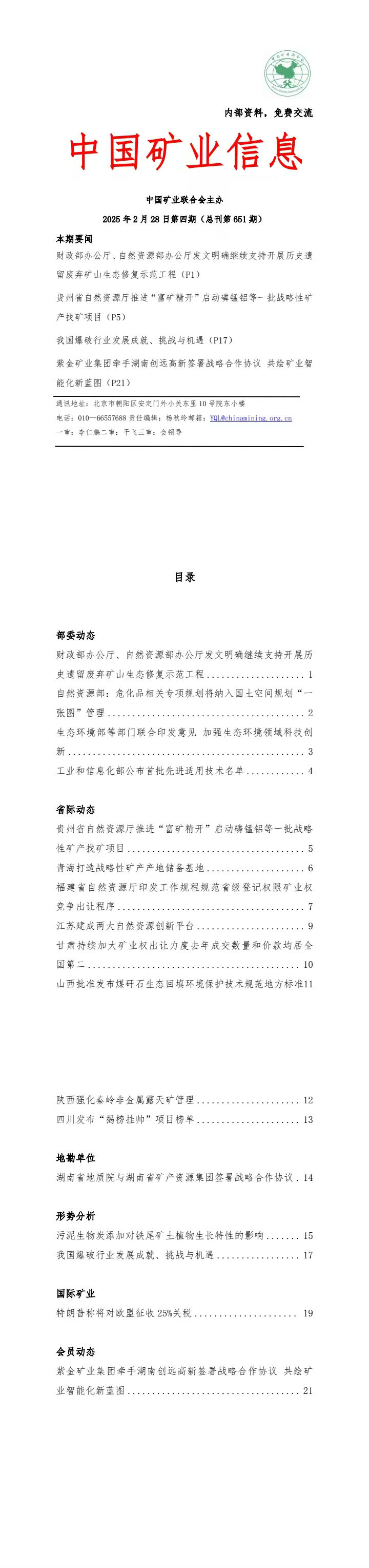 中國礦業(yè)網(wǎng):2025年2月24日—2月28日《中國礦業(yè)信息》第四期