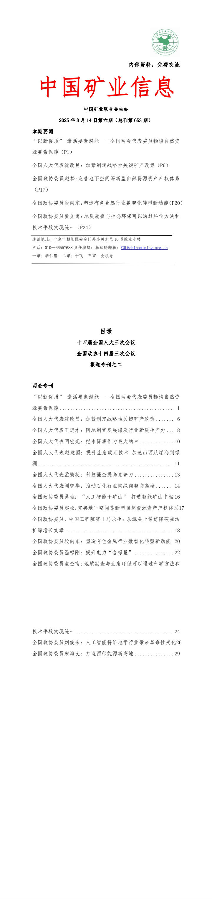 中國礦業(yè)網(wǎng):2025年3月10日—3月14日《中國礦業(yè)信息》第六期
