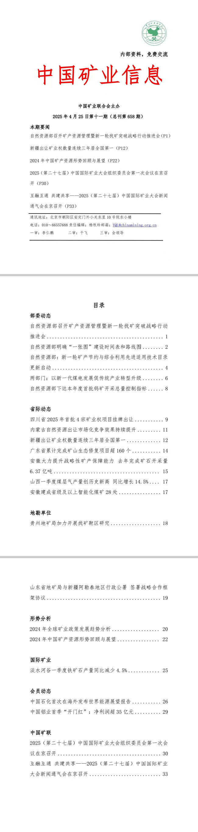2025年4月21日—4月25日《中國(guó)礦業(yè)信息》第十一期(總刊第658期)