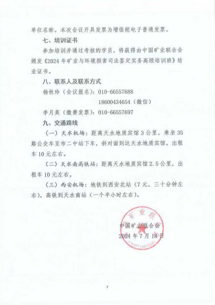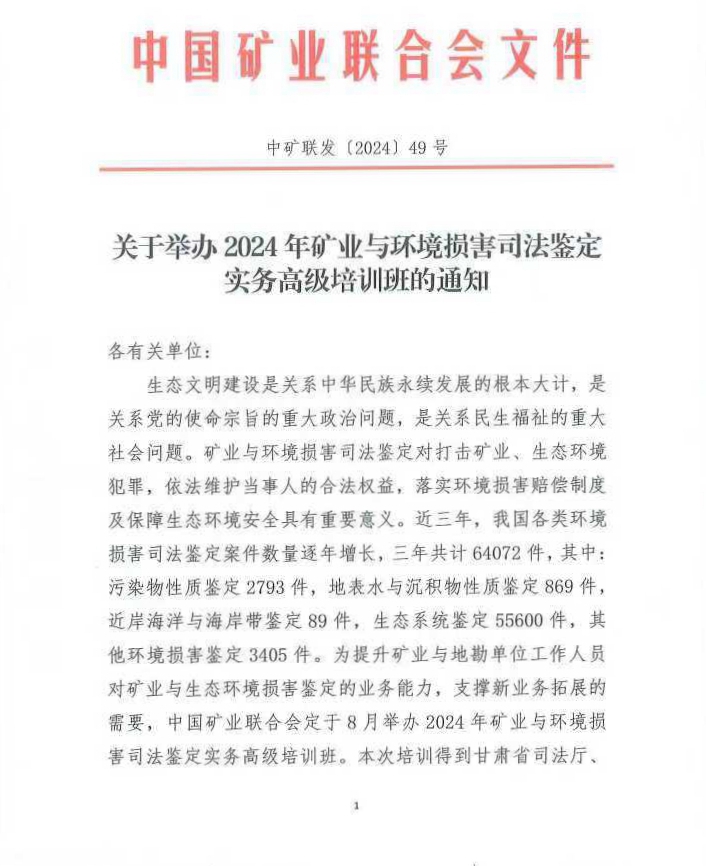 下載通知:關(guān)于舉辦2024年礦業(yè)與環(huán)境損害司法鑒定實(shí)務(wù)高級培訓(xùn)班的通知.pdf