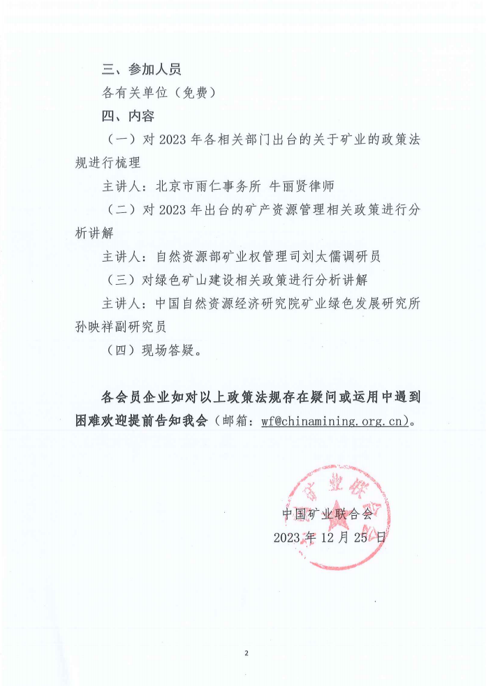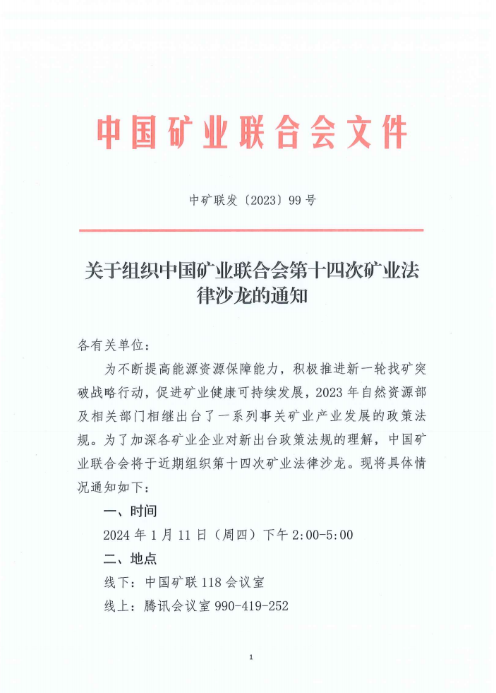 關(guān)于組織中國(guó)礦業(yè)聯(lián)合會(huì)第十四次礦業(yè)法律沙龍的通知