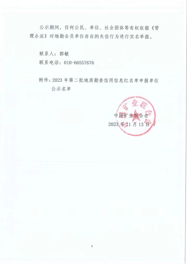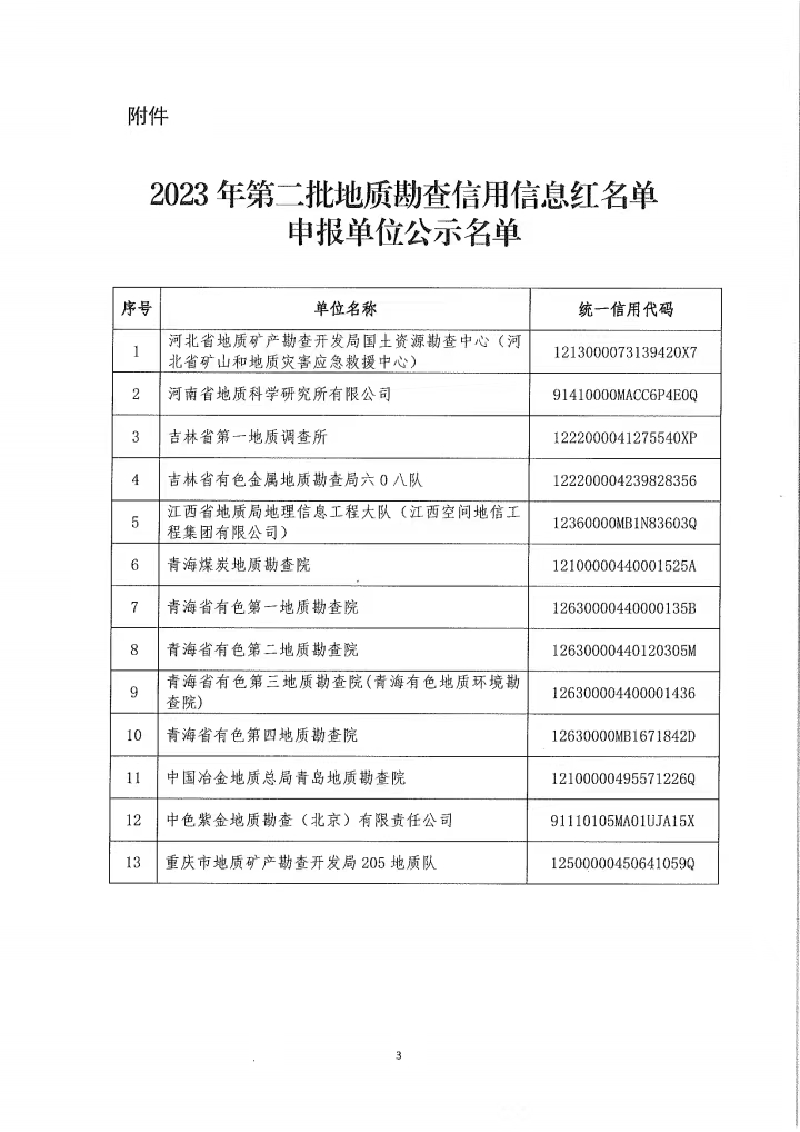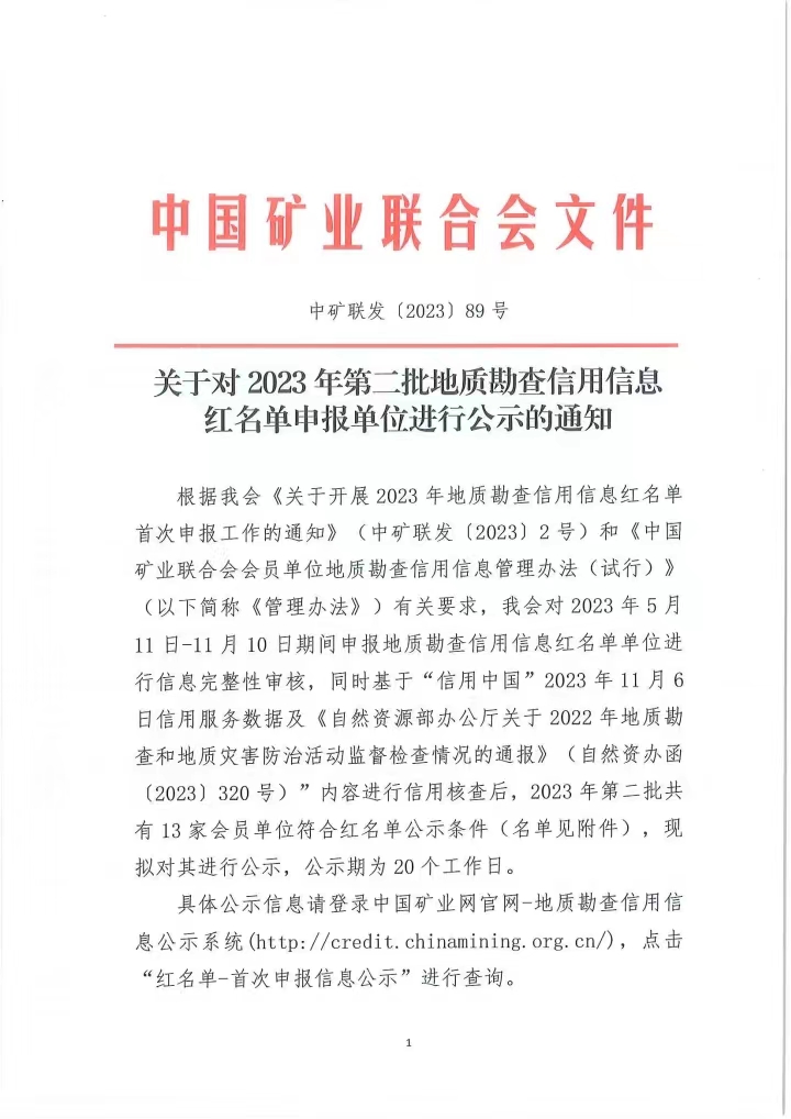 關(guān)于對2023年第二批地質(zhì)勘查信用信息紅名單申報單位進行公示的通知