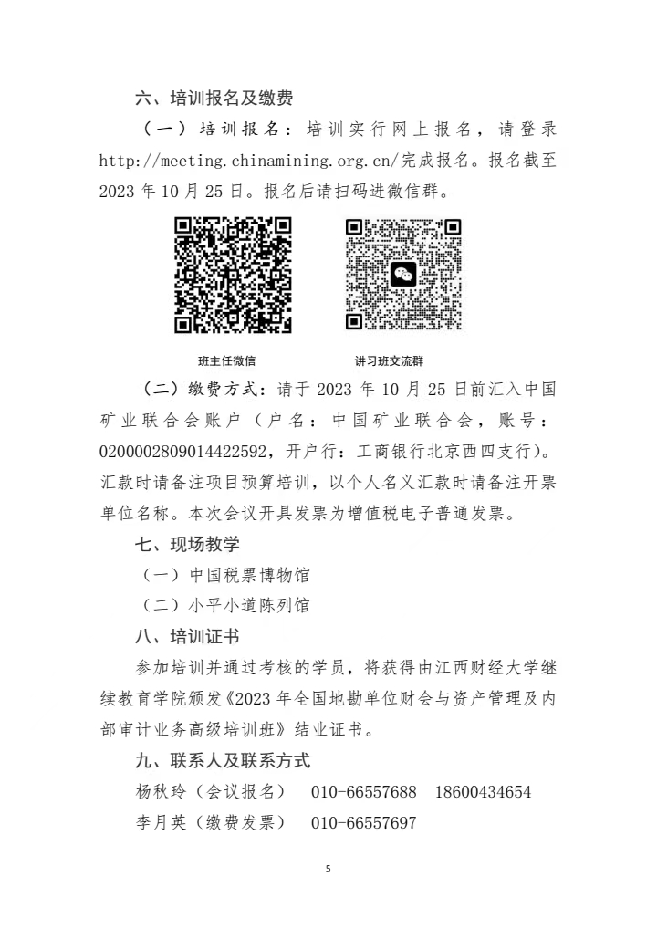 (二)培訓(xùn)費(fèi)用(含資料費(fèi)、餐費(fèi)、單人住宿、結(jié)業(yè)證書(shū)等):會(huì)員單位2800元/人,非會(huì)員單位3800元/人(未繳納2023年會(huì)費(fèi)的會(huì)員單位按照非會(huì)員單位收?。?。此次培訓(xùn)不接受現(xiàn)場(chǎng)繳費(fèi)。