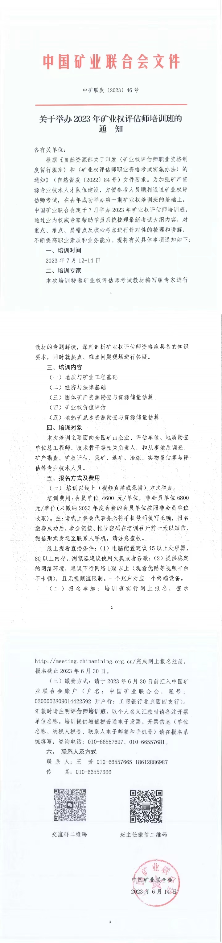 下載通知:關(guān)于舉辦2023年礦業(yè)權(quán)評(píng)估師培訓(xùn)班的通知.pdf