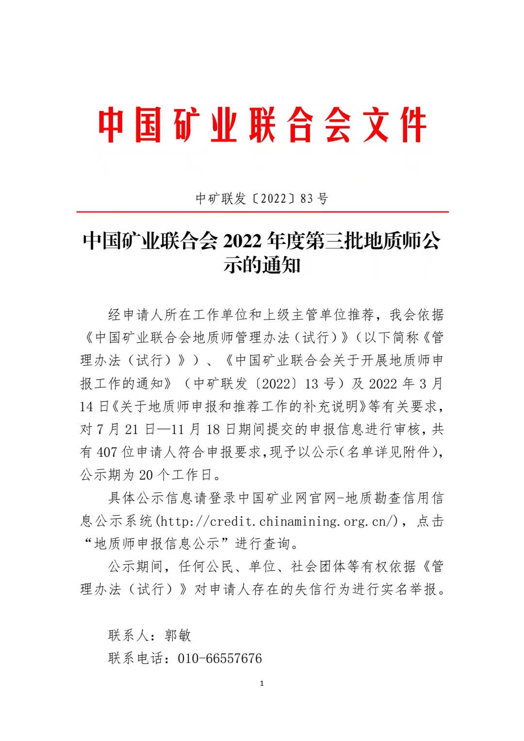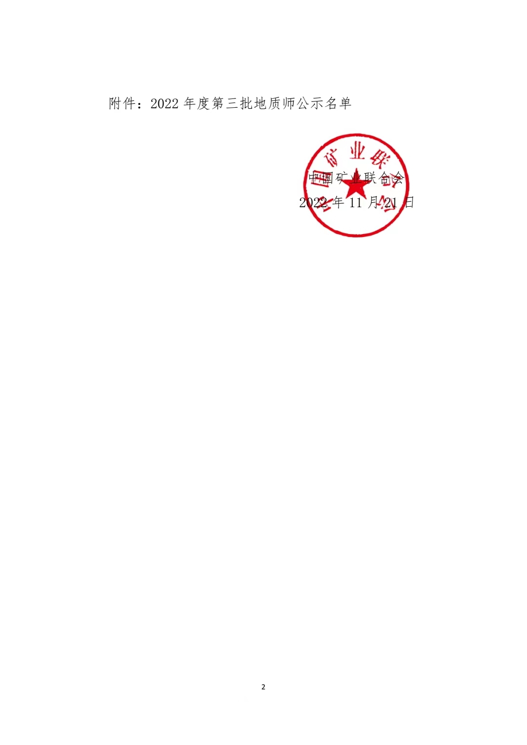 下載通知:中國(guó)礦業(yè)聯(lián)合會(huì)2022年度第三批地質(zhì)師公示的通知 .pdf