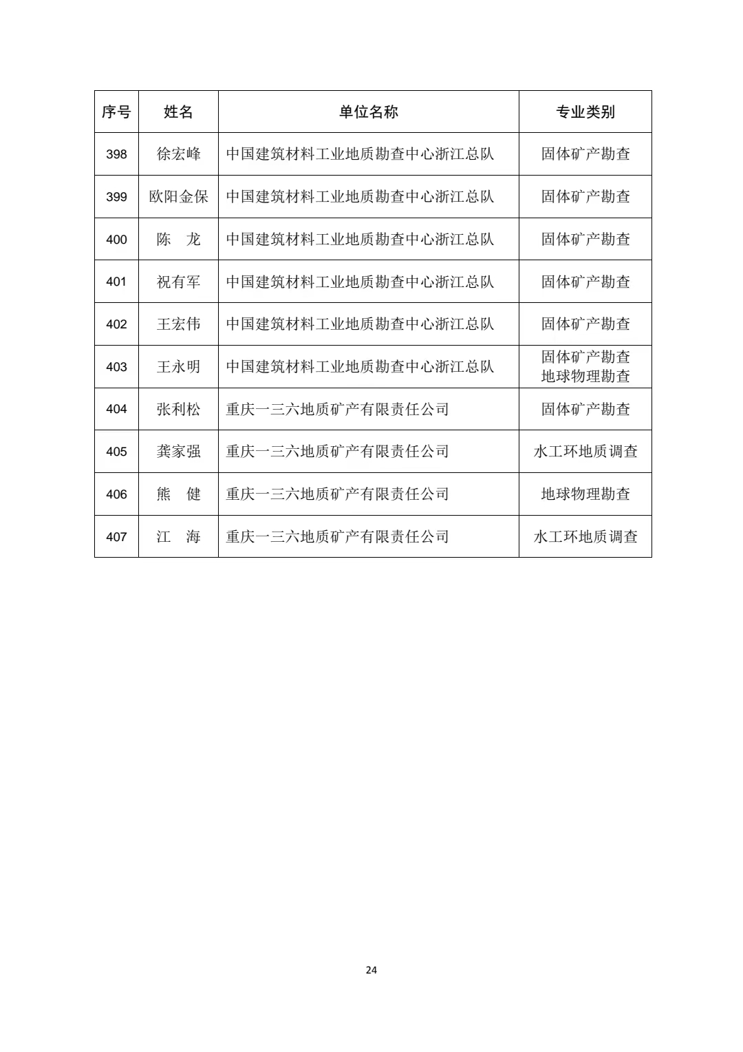 經(jīng)申請(qǐng)人所在工作單位和上級(jí)主管單位推薦,我會(huì)依據(jù)《中國(guó)礦業(yè)聯(lián)合會(huì)地質(zhì)師管理辦法(試行)》(以下簡(jiǎn)稱《管理辦法(試行)》)、《中國(guó)礦業(yè)聯(lián)合會(huì)關(guān)于開(kāi)展地質(zhì)師申報(bào)工作的通知》(中礦聯(lián)發(fā)〔2022〕13號(hào))及2022年3月14日《關(guān)于地質(zhì)師申報(bào)和推薦工作的補(bǔ)充說(shuō)明》等有關(guān)要求,對(duì)7月21日-11月18日期間提交的申報(bào)信息進(jìn)行審核,共有407位申請(qǐng)人符合申報(bào)要求,現(xiàn)予以公示(名單詳見(jiàn)附件),公示期為20個(gè)工作日。