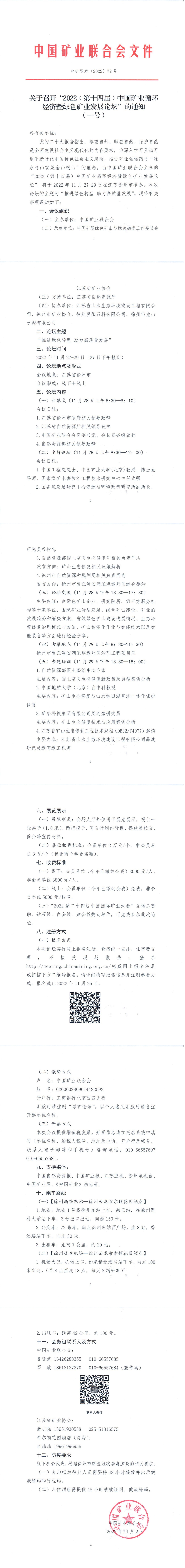 關于召開“2022(第十四屆)中國礦業(yè)循環(huán)經(jīng)濟暨綠色礦業(yè)發(fā)展論壇”的通知(一號)