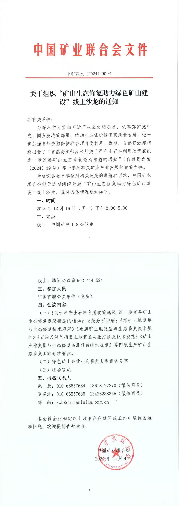 中國礦業(yè)聯(lián)合會:關(guān)于組織“礦山生態(tài)修復(fù)助力綠色礦山建設(shè)”線上沙龍的通知