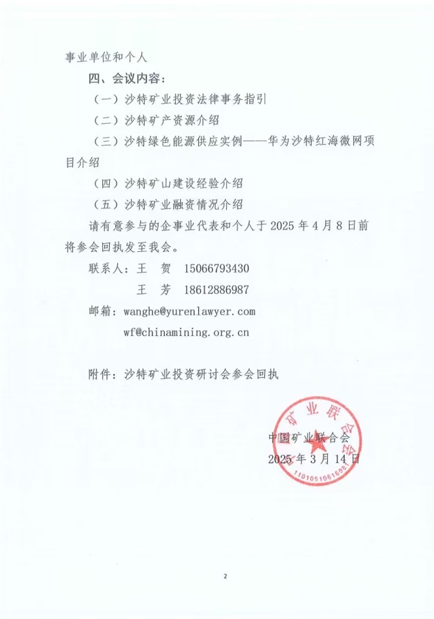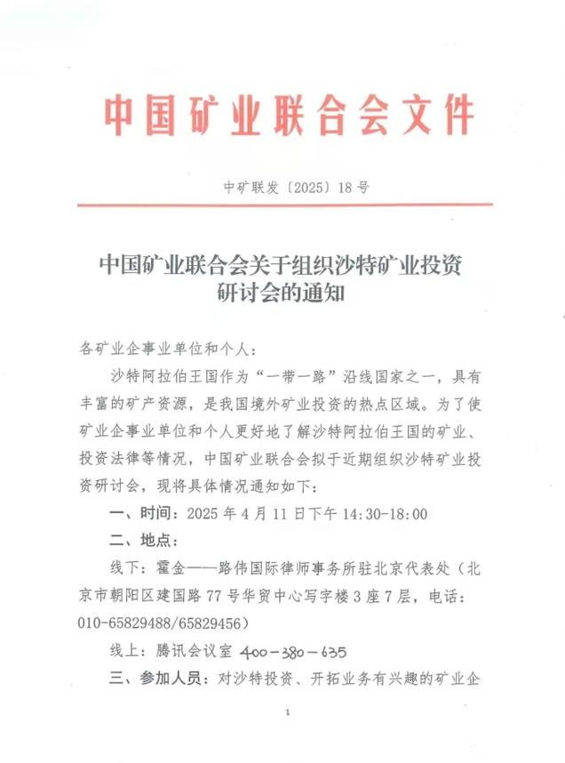 中國礦業(yè)聯(lián)合會關(guān)于組織沙特礦業(yè)投資研討會的通知