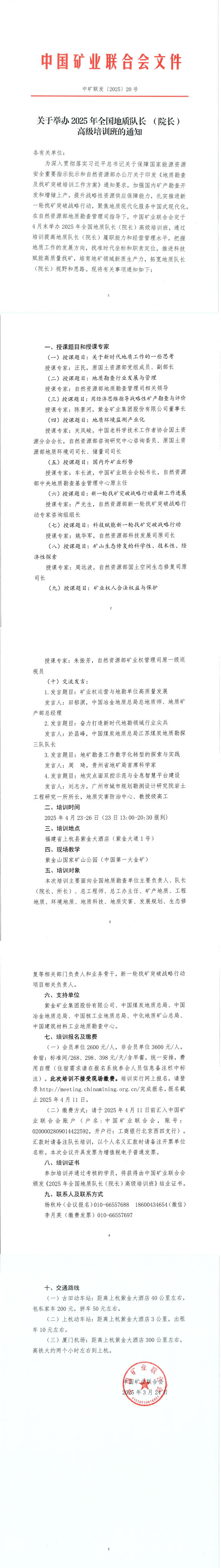 關(guān)于舉辦2025年全國地質(zhì)隊(duì)長 (院長)高級(jí)培訓(xùn)班的通知